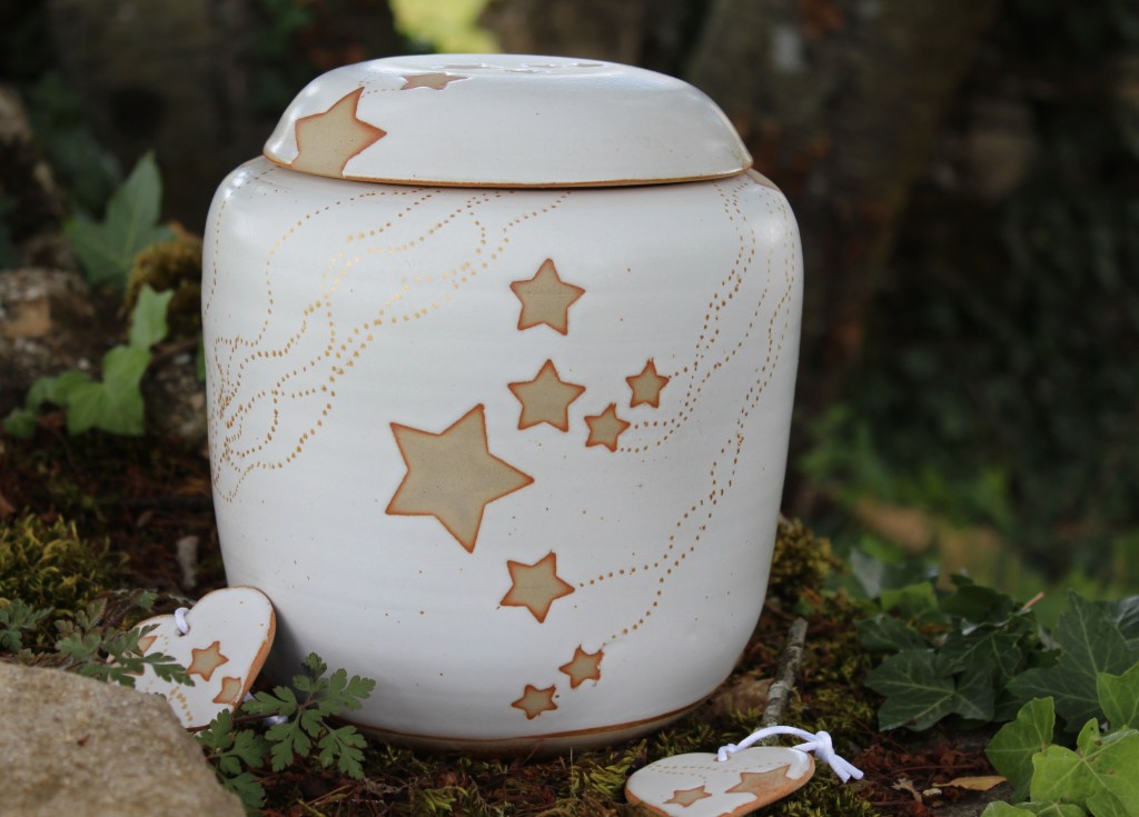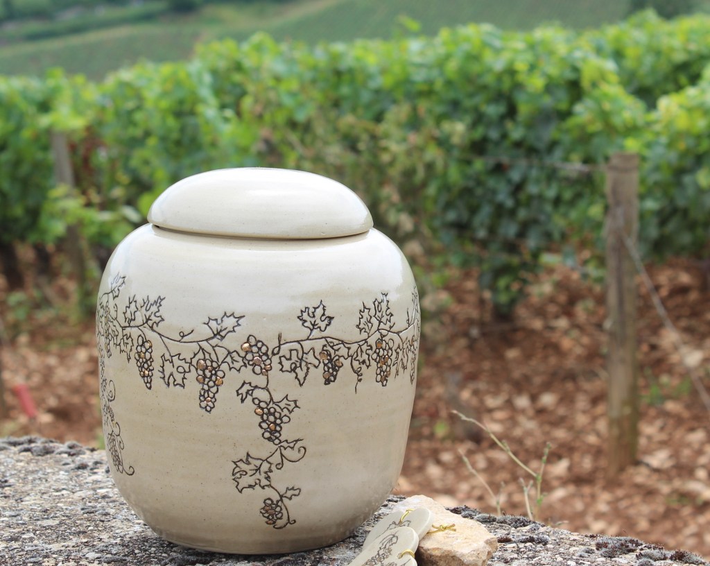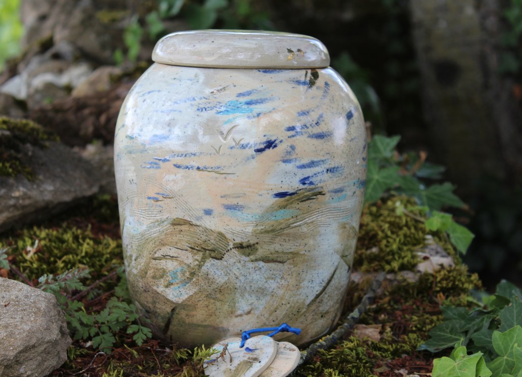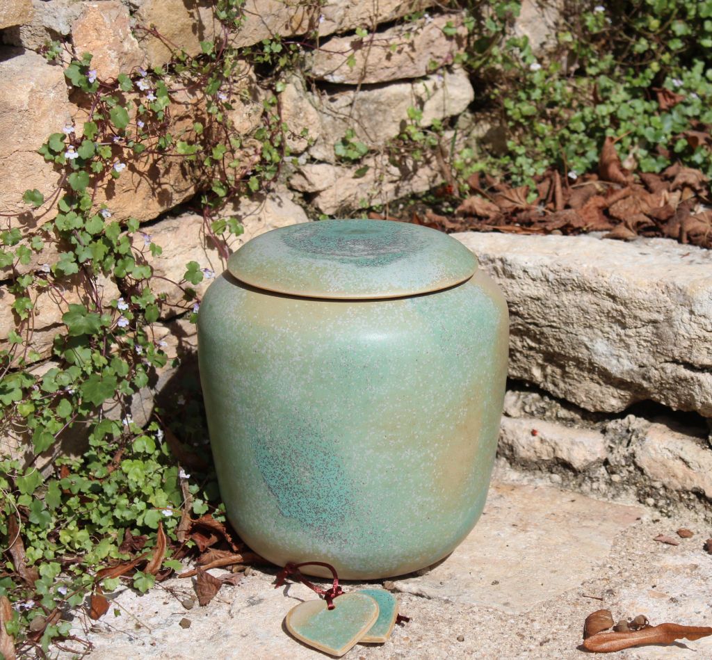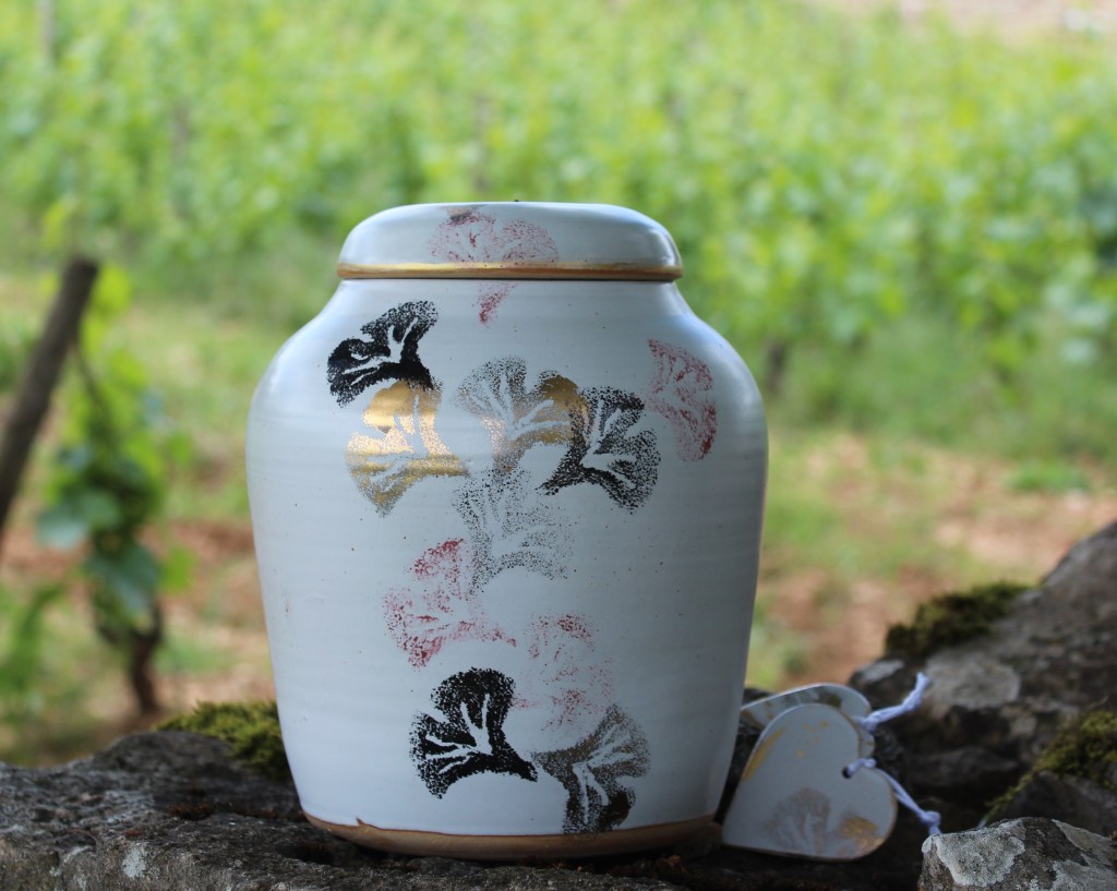 Urnes funéraires décorées et émaillées à l’intérieur et à l’extérieur, conçues pour être placées dans les colombariums, les monuments ou caveaux, les cavurnes.