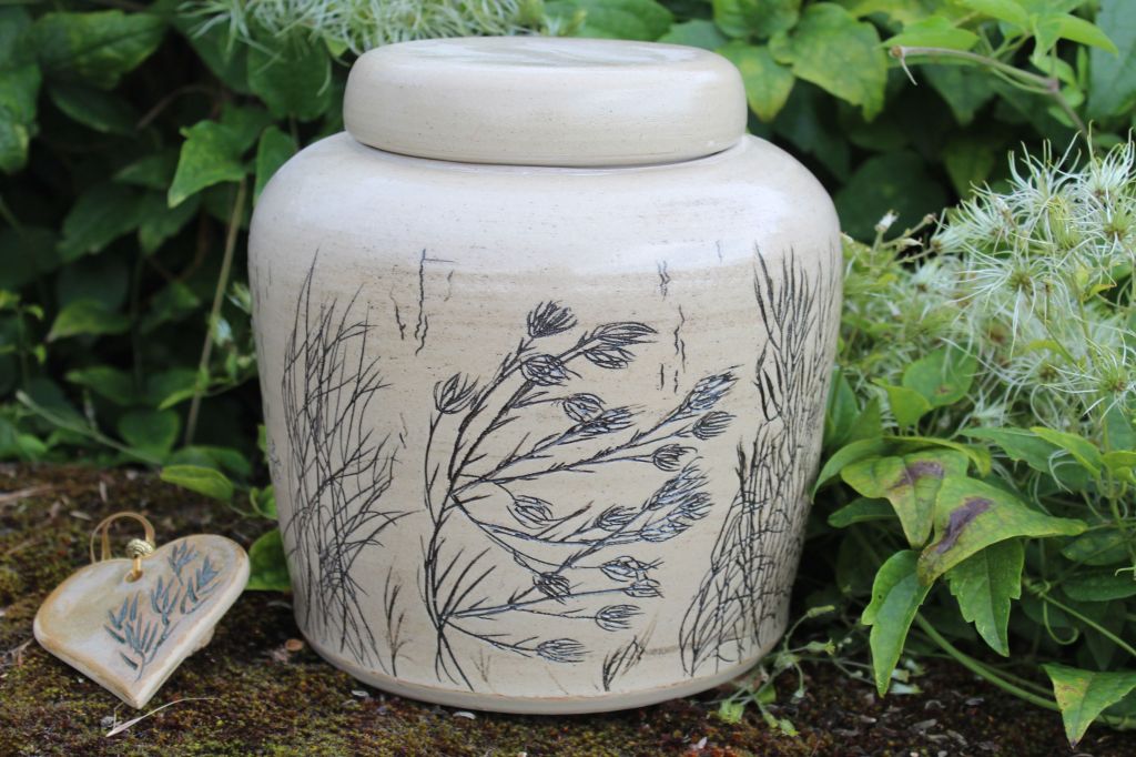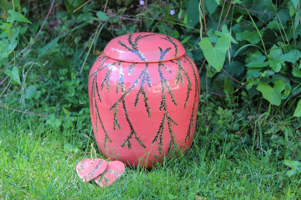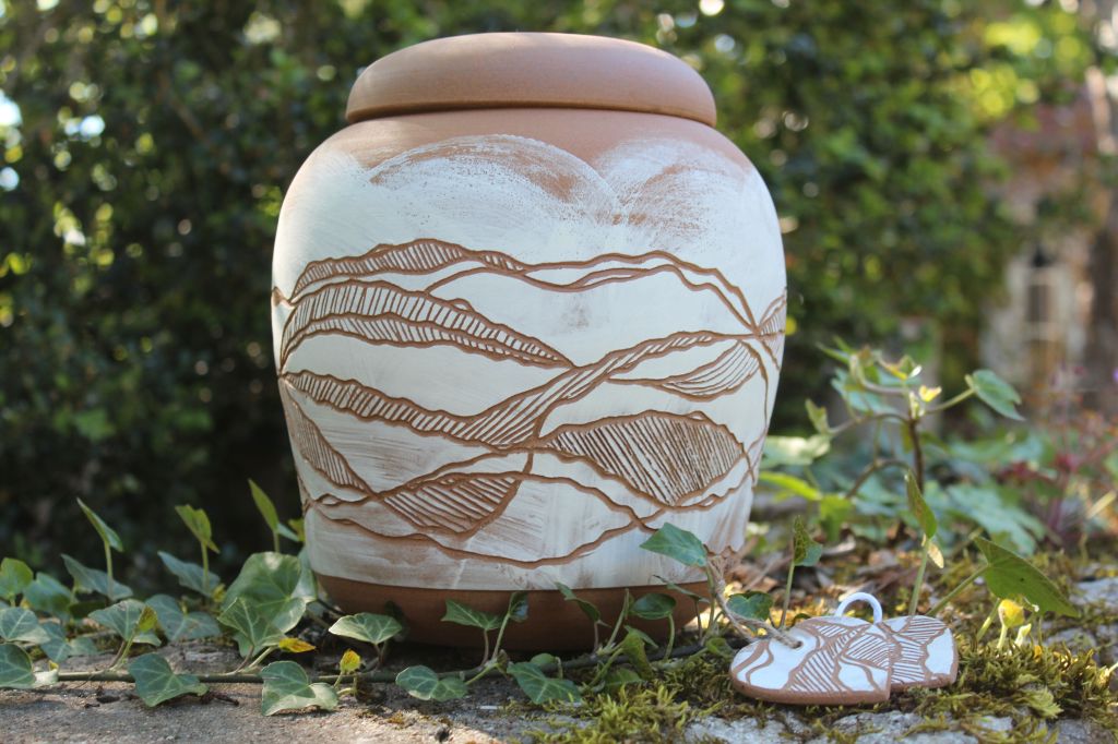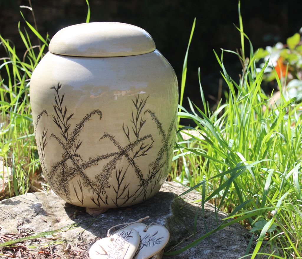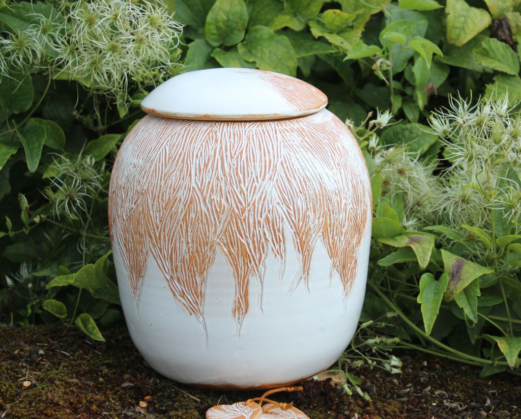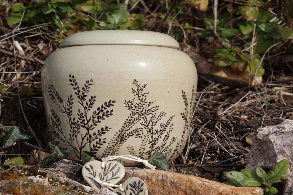 Urnes funéraires décorées et émaillées à l’intérieur et à l’extérieur, conçues pour être placées dans les colombariums, les monuments ou caveaux, les cavurnes.
