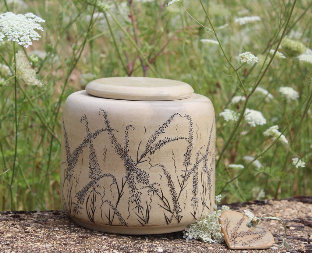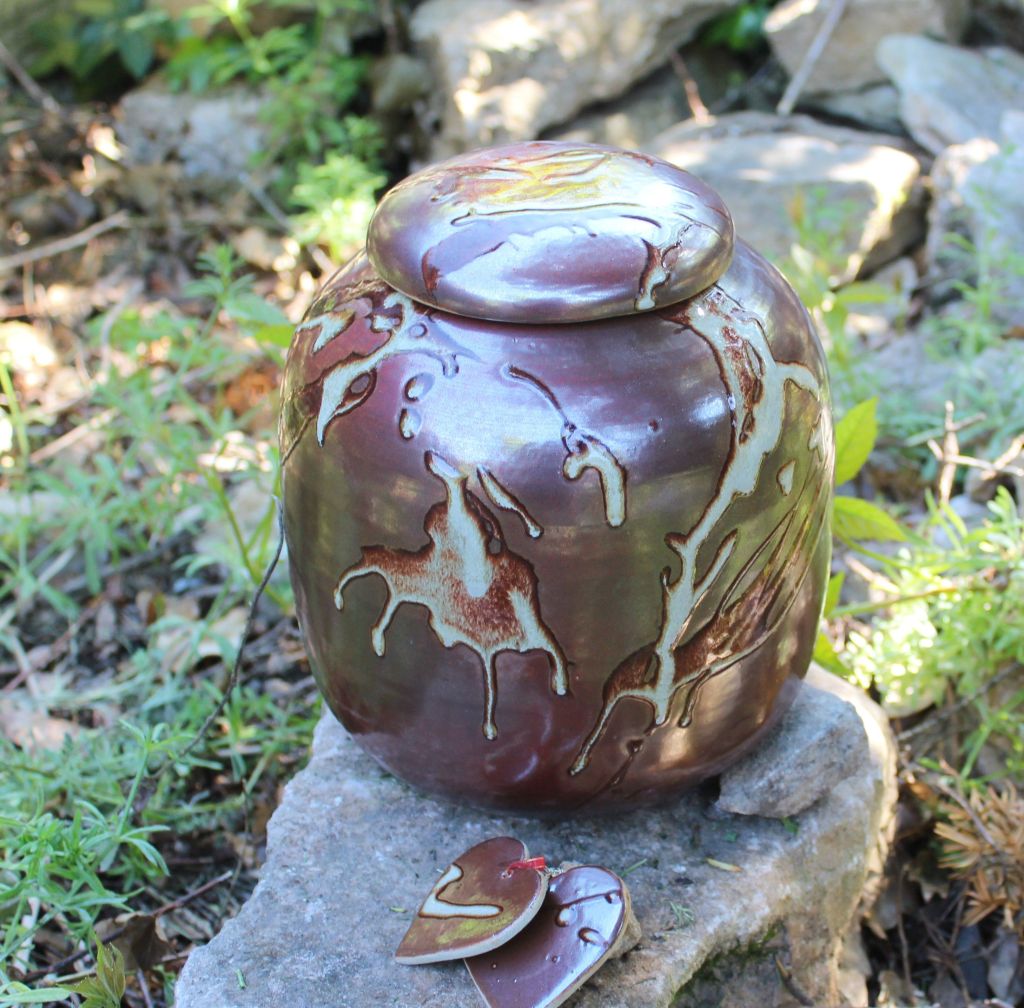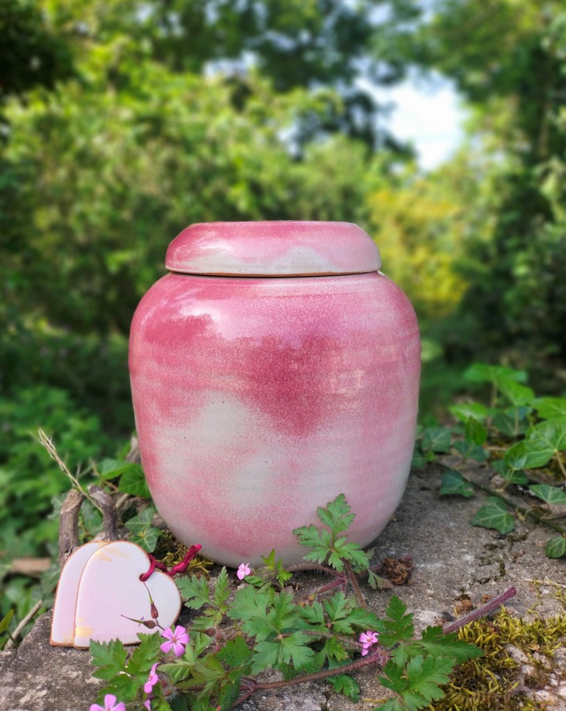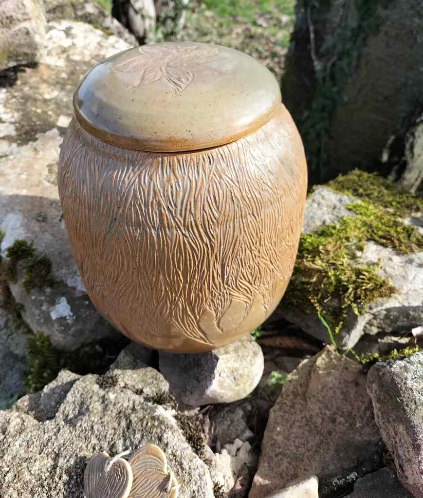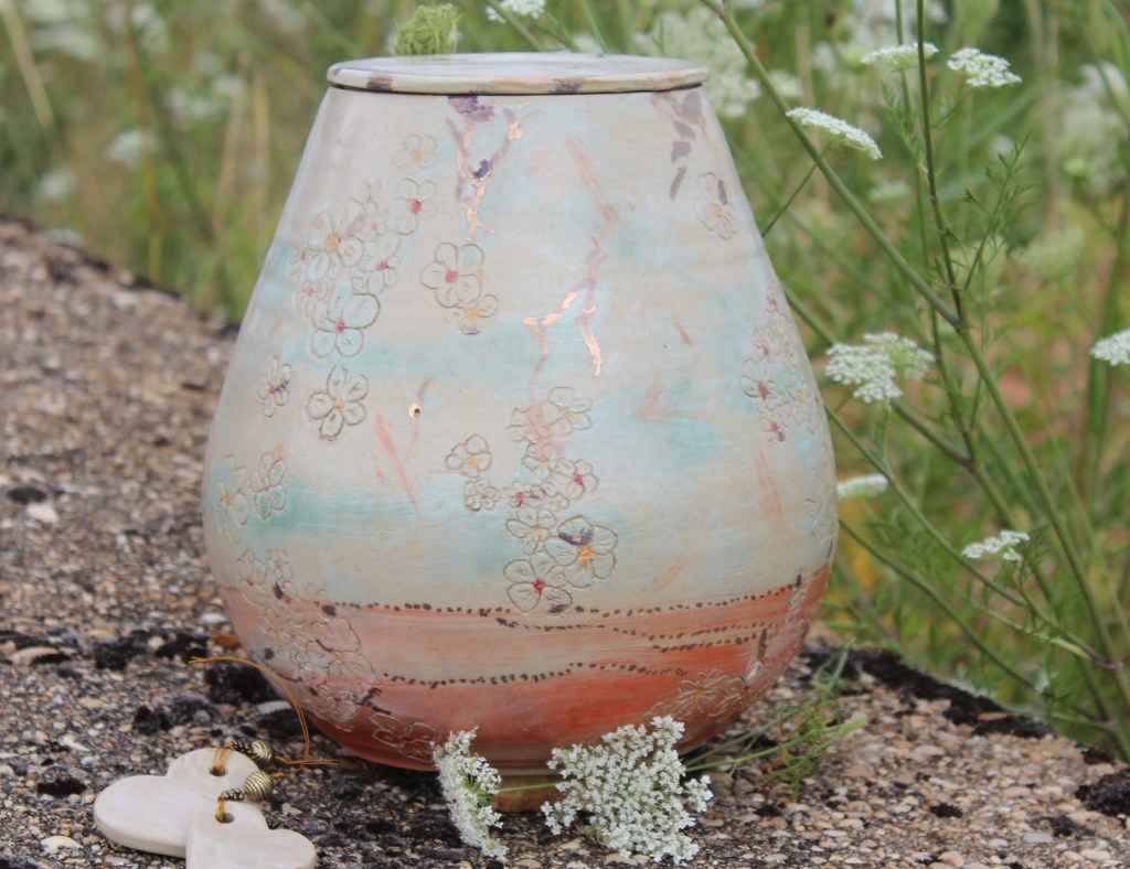 Urnes funéraires décorées et émaillées à l’intérieur et à l’extérieur, conçues pour être placées dans les colombariums, les monuments ou caveaux, les cavurnes.