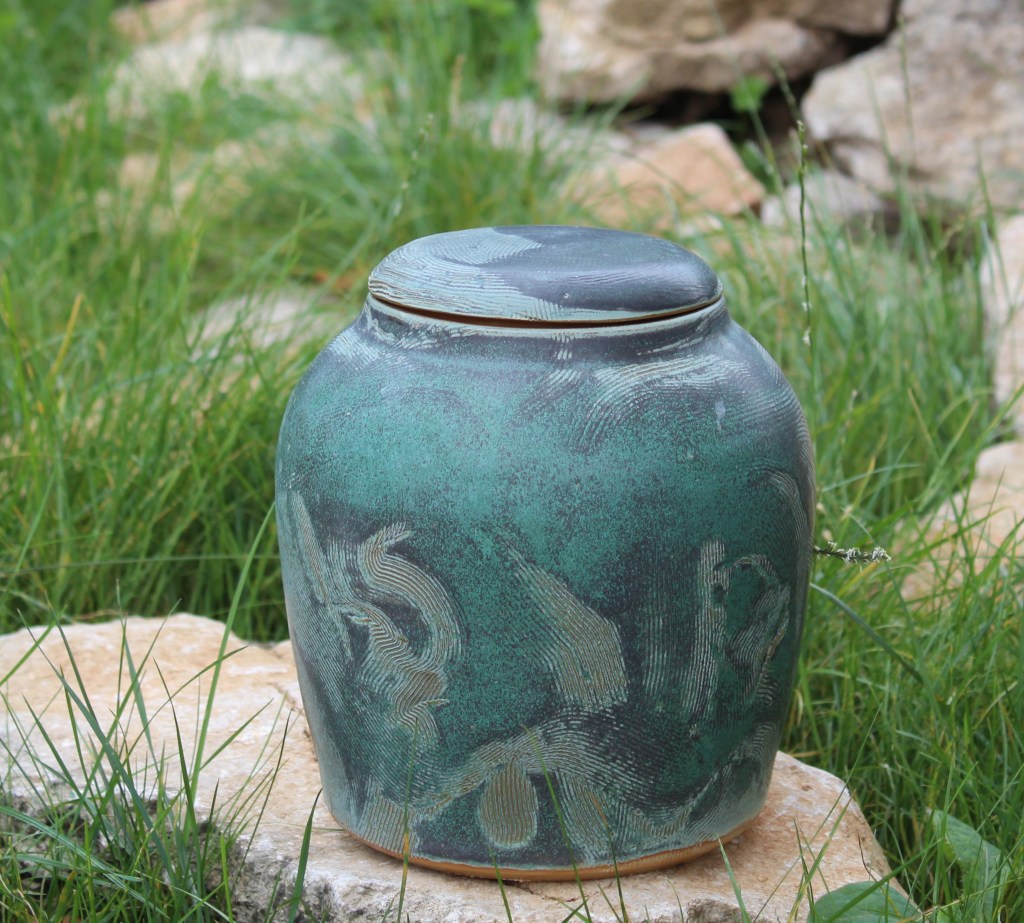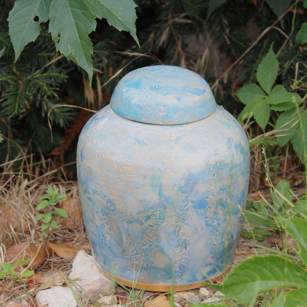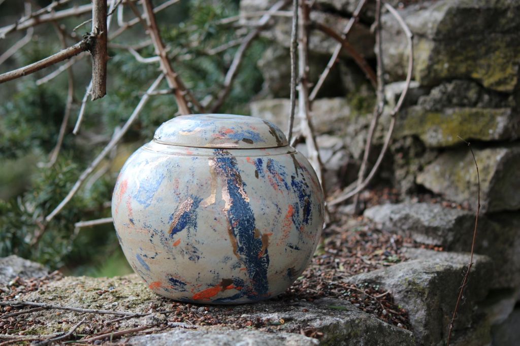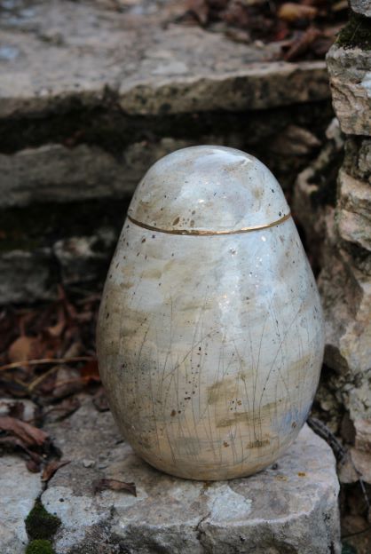 Mes urnes sont réalisées en grès de Bourgogne, argile qui se vitrifie et devient très solide après 2 cuissons haute température.