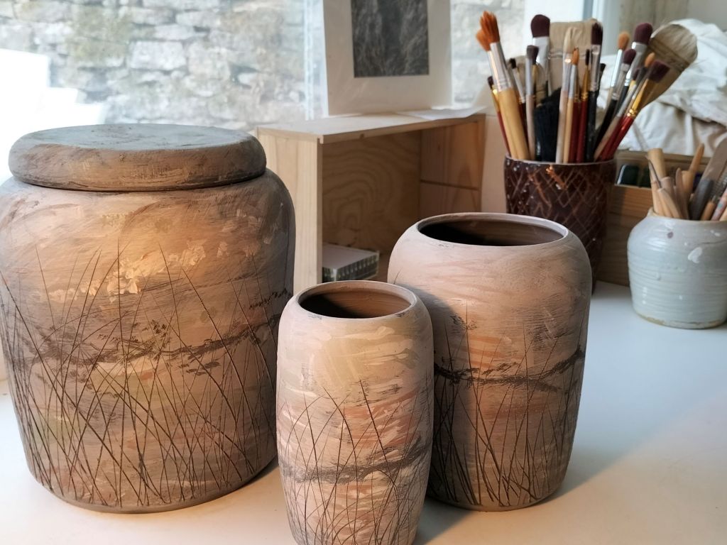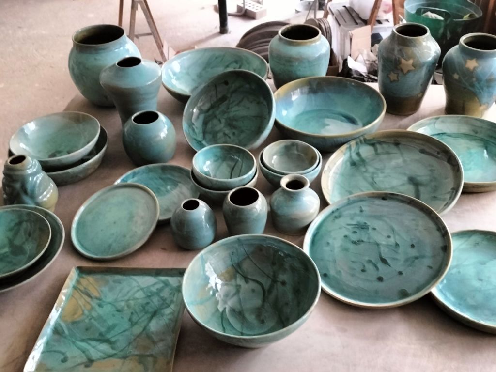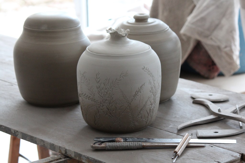s’étalant durant environ 3 semaines, intercallant façonnage, temps de séchage et 2 cuissons à haute température (980° et 1280°C)